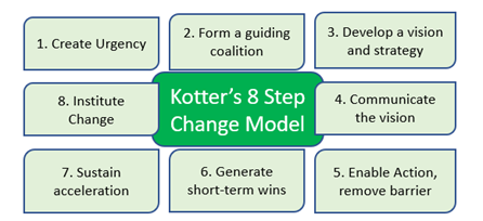 Alhaderi, D. S. (2021). Kotter’s Eight Step Change Model for Employees’ Intentional, Cognitive and Emotional Readiness for Change and Developing Regional Economy in Saudi Banking Sector’s, Role of Homologous Communication, Learning Demand and Job Involvement. Journal of Legal, Ethical and Regulatory Issues, 24.